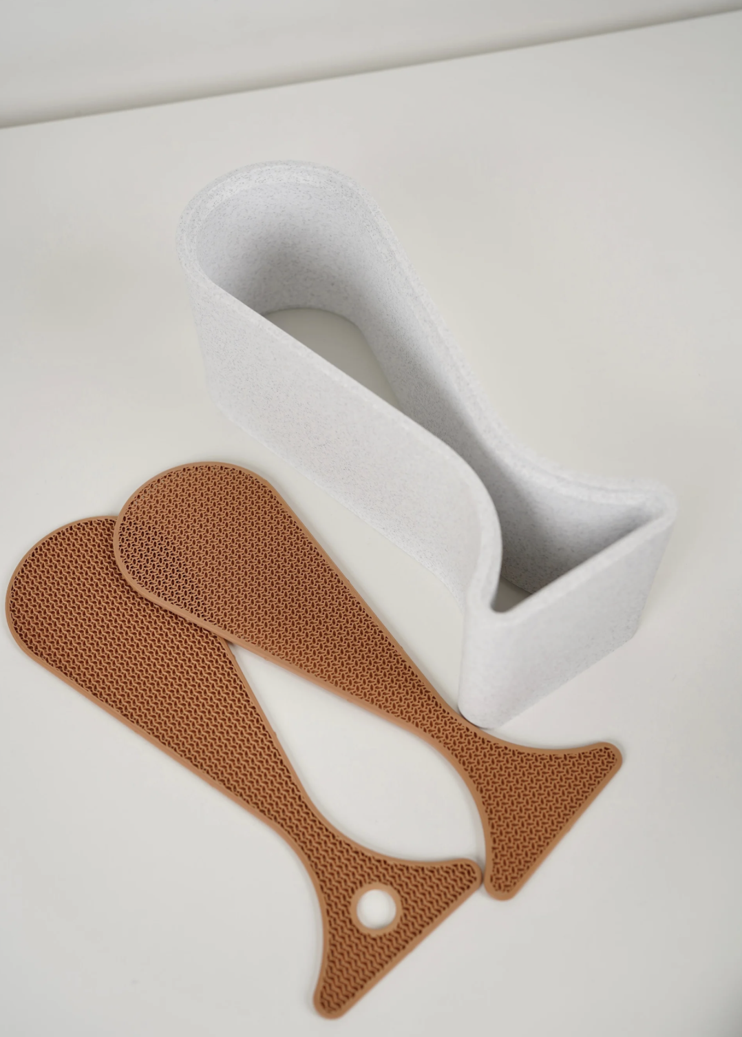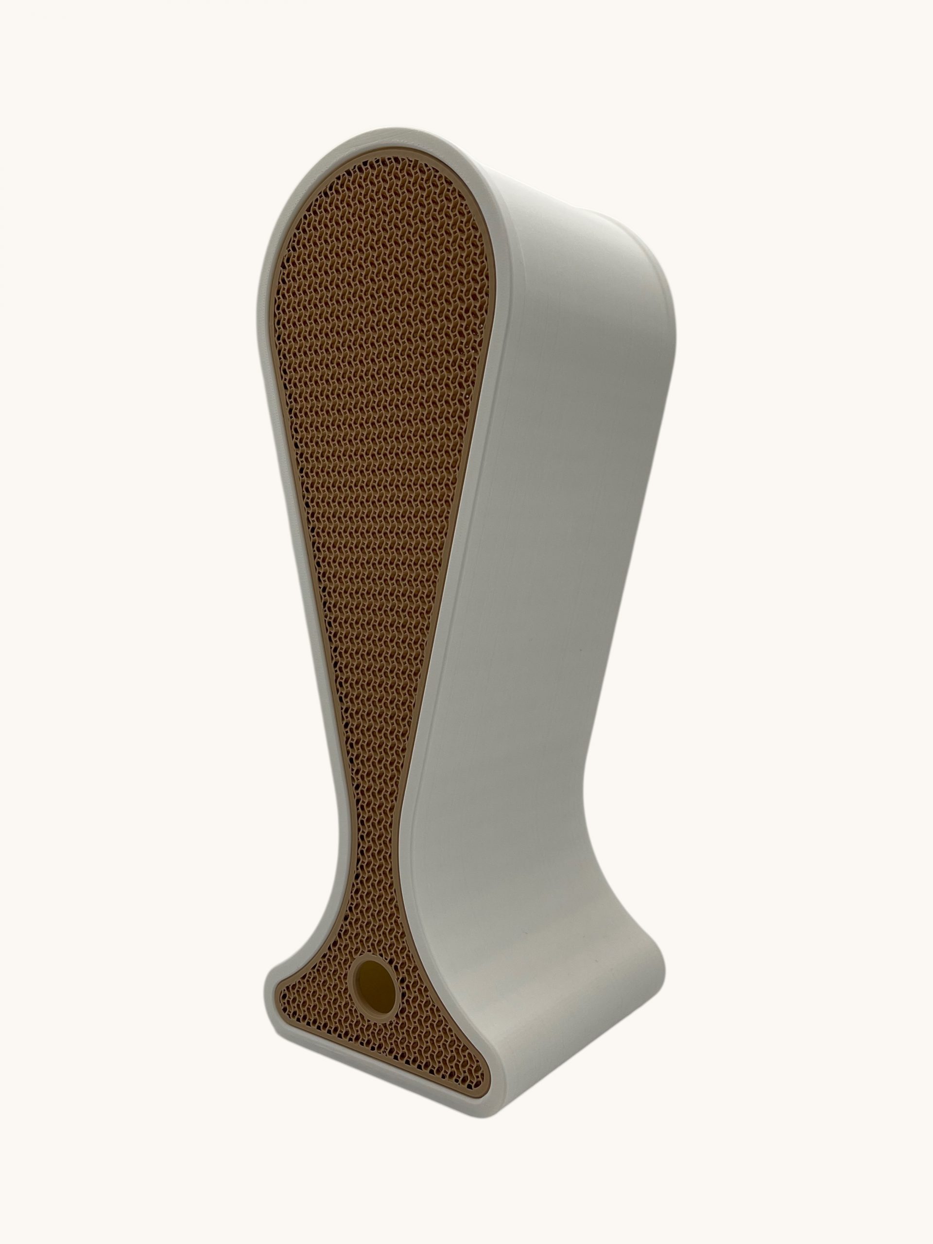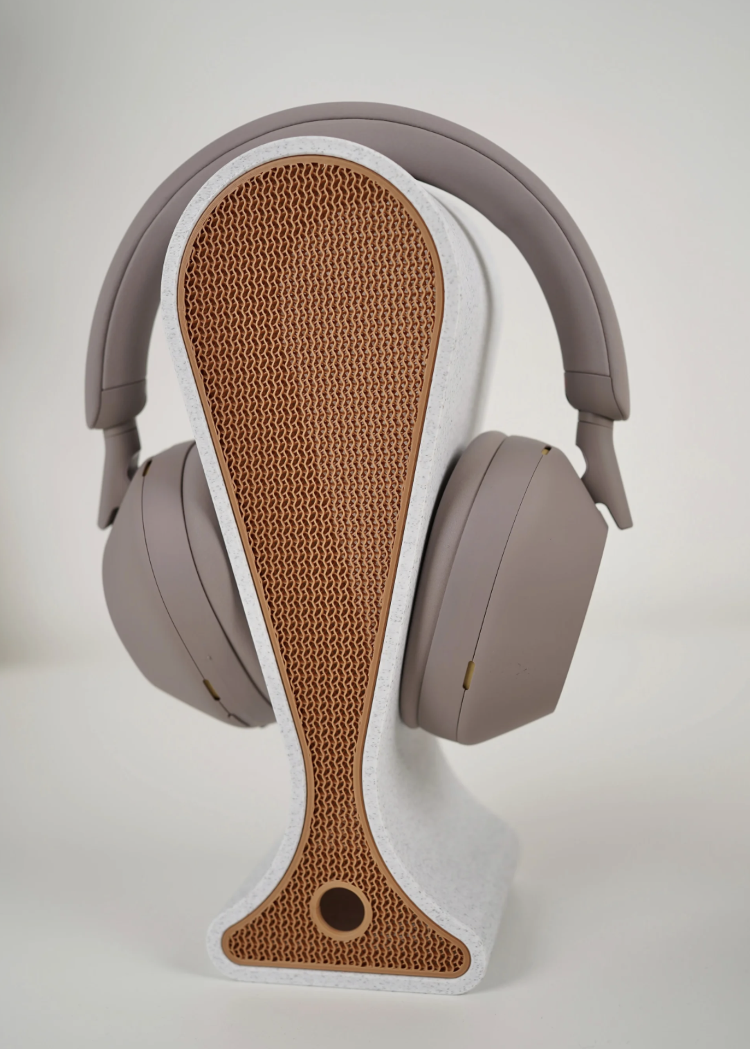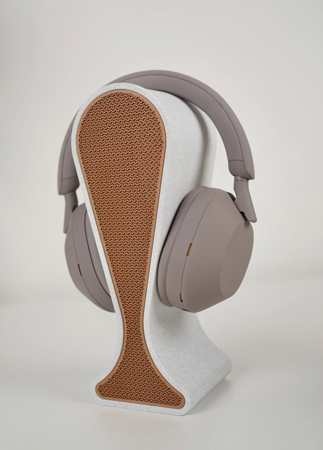 Dieser elegante Kopfhörer-Ständer wurde im modernen 3D-Druckverfahren hergestellt und vereint Funktionalität mit einem ansprechenden Design. Die markante Form mit der geschwungenen Silhouette sorgt für einen sicheren Halt Ihres Kopfhörers und hält ihn ordentlich auf Ihrem Schreibtisch oder Nachttisch bereit. Besonders auffällig ist die strukturierte, gitterartige Oberfläche in einem warmen Braunton, die von einem weißen Rahmen umgeben wird – ein echter Blickfang in jedem Raum. Der stabile Standfuß sorgt dafür, dass der Ständer sicher auf jeder Oberfläche steht, ohne zu verrutschen. Dank des 3D-Druckverfahrens weist das Produkt eine einzigartige, detailreiche Textur auf, die sowohl optisch als auch haptisch überzeugt. Der Ständer ist für die meisten gängigen Over-Ear- und On-Ear-Kopfhörer geeignet und hält Ihren Kopfhörer griffbereit, wenn Sie ihn brauchen. Ein praktisches und stilvolles Accessoire für jeden Musikliebhaber oder Home-Office-Arbeitsplatz.